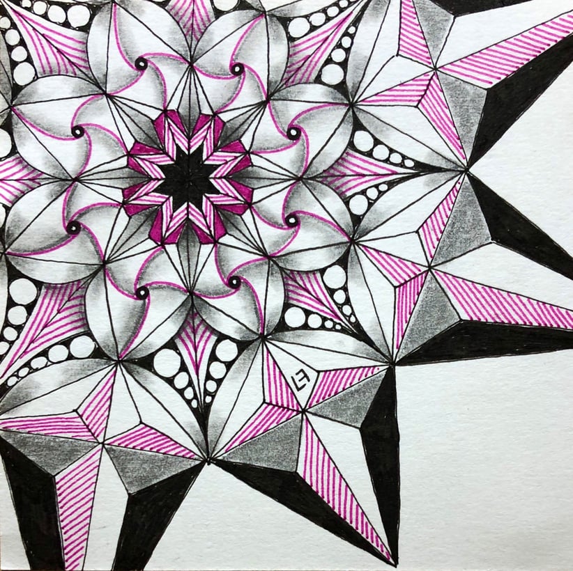 Unlike the use of mantras in traditional meditation, the act of drawing provides both a visual and kinaesthetic component. Stillness of the mind can be easily achieved by putting focus on the repetitive movements of the hand and the visual and effects it produces with the pen, creating a powerful hand-eye feedback loop in which the attention is held.
